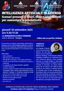 Giovedì 18 settembre 2025 ore 9:30/17:30 c/o MANAGERITALIA EMILIA-ROMAGNA (Viale A. Moro 64 – Bologna).