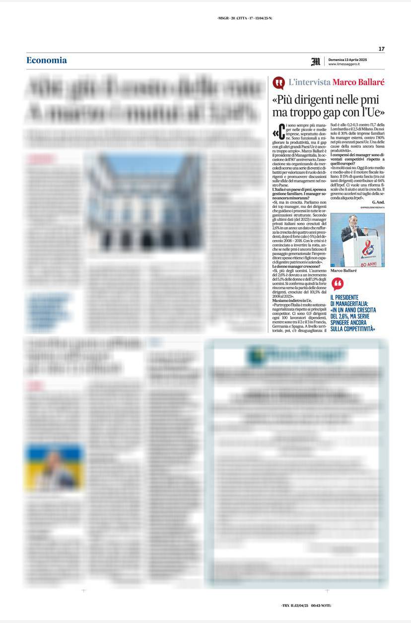Il mondo del lavoro sta vivendo la sua trasformazione più profonda. Tecnologia, sostenibilità, nuovi equilibri economici e sociali ridefiniscono il ruolo del manager, chiamato a essere leader del cambiamento. Manageritalia è pronta a questa sfida: non più solo un sindacato dei manager, ma un motore di evoluzione per il lavoro e il Paese.