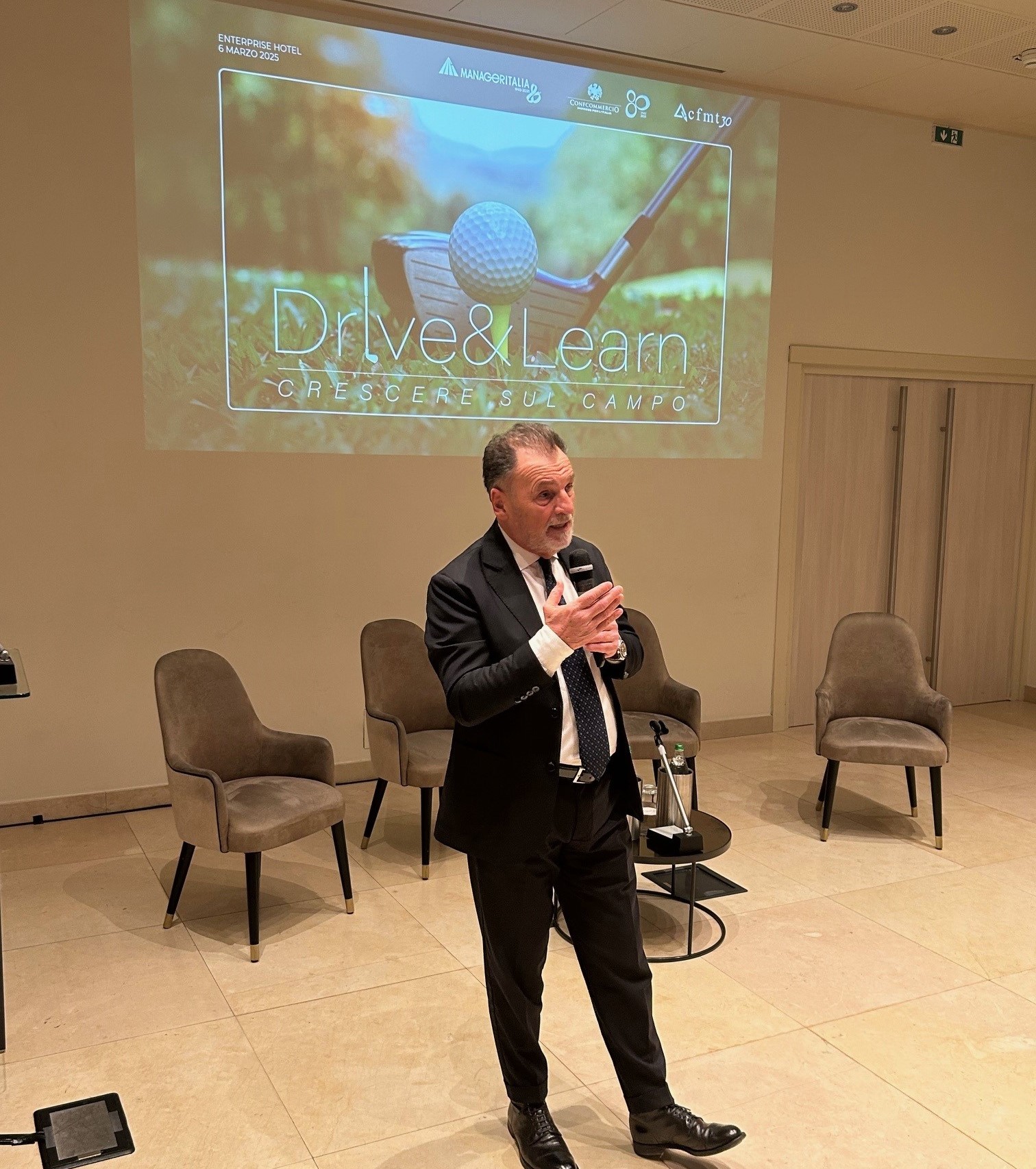 Milano, 7 marzo 2025 – Unire la pratica sul green, l’opportunità di fare formazione e sviluppare il networking: sono queste le tre anime che contraddistinguono “Drive&Learn – Crescere sul campo”, il nuovo circuito di sfide golfistiche organizzato da Manageritalia, Confcommercio – Imprese per l’Italia e CFMT (Centro di Formazione Management del Terziario) presentato ieri sera a Milano presso dell’Hotel Enterprise, con la partecipazione di un padrino d’eccezione nonché appassionato golfista, il giornalista Massimo De Luca.