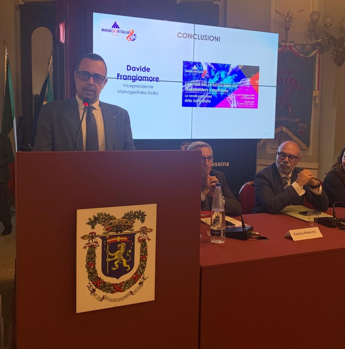 “L’approccio manageriale dell’incontro di oggi è un utile spunto anche per l’attività degli Enti Locali” così ha commentato il Sindaco di Messina Federico Basile che prosegue: “Infatti, lo spirito pragmatico fatto di teoria e pratica è fondamentale per dare concretezza ad azioni volte a sviluppare sempre più sostenibilità economica, sociale ed ambientale nei nostri territori. Noi amministratori dobbiamo sviluppare sinergie con gli altri attori oggi presenti qui e fare rete e iniziative comuni”.