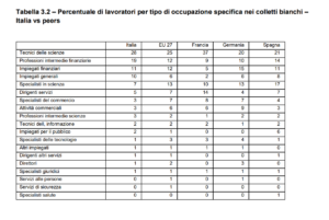 • Nonostante alcune differenze tra i paesi europei, la composizione delle categorie di impiegati sembra essere allineata rispetto alla rappresentanza di settori rilevanti, anche se in Italia si rileva un maggior peso della categoria specializzata dei tecnici delle scienze rispetto alla media europea.
