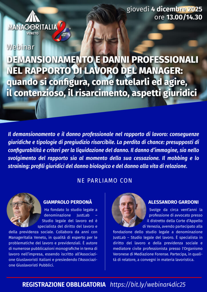 nel rapporto di lavoro del manager: quando si configura, come tutelarli ed agire, il contenzioso, il risarcimento, aspetti giuridici
