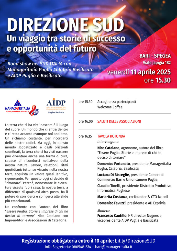 Un confronto con l’autore del libro “Essere Puglia. Storie e imprese di chi ha deciso di tornare” Nico Catalano con Imprenditori e Associazioni di Categoria.