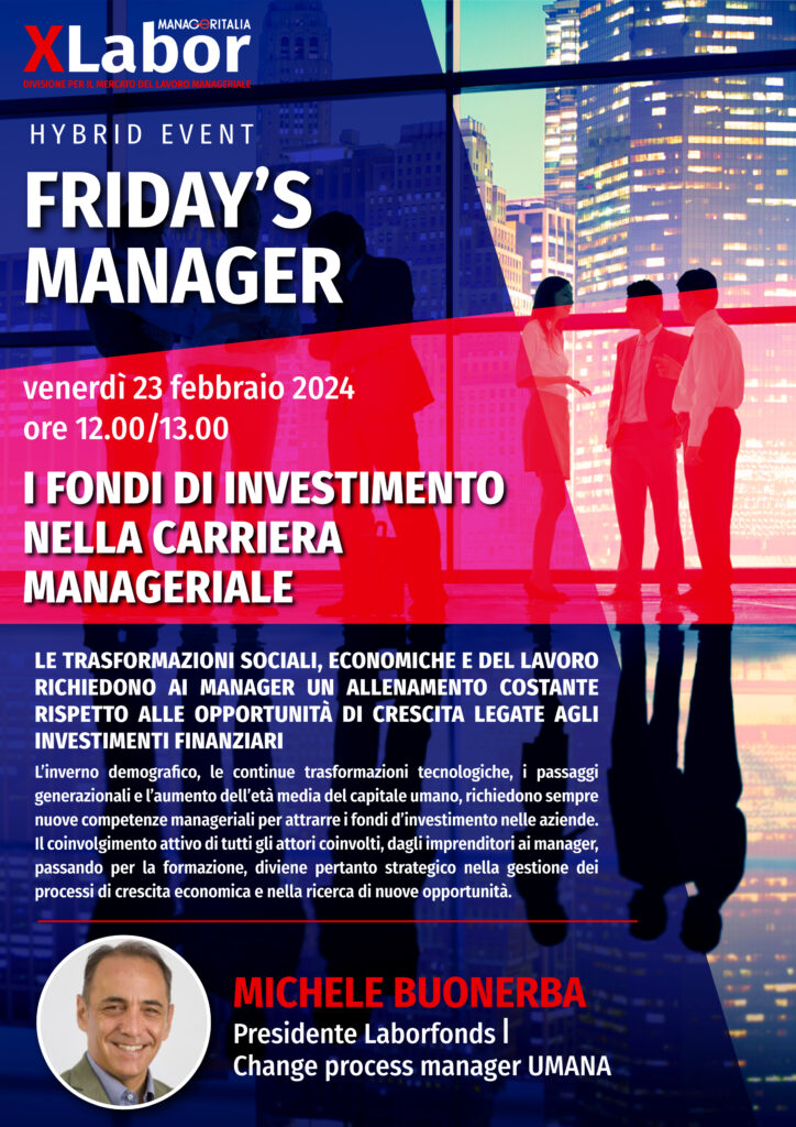 23 febbraio 2024: un nuovo appuntamento Friday’s Manager di XLabor, la divisione di Manageritalia dedicata al mercato del lavoro.
