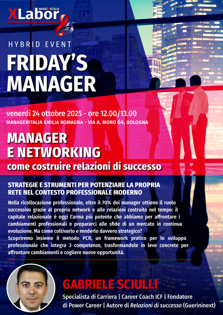 24 ottobre 2025: un nuovo appuntamento Friday’s Manager di XLabor, la divisione di Manageritalia dedicata al mercato del lavoro.