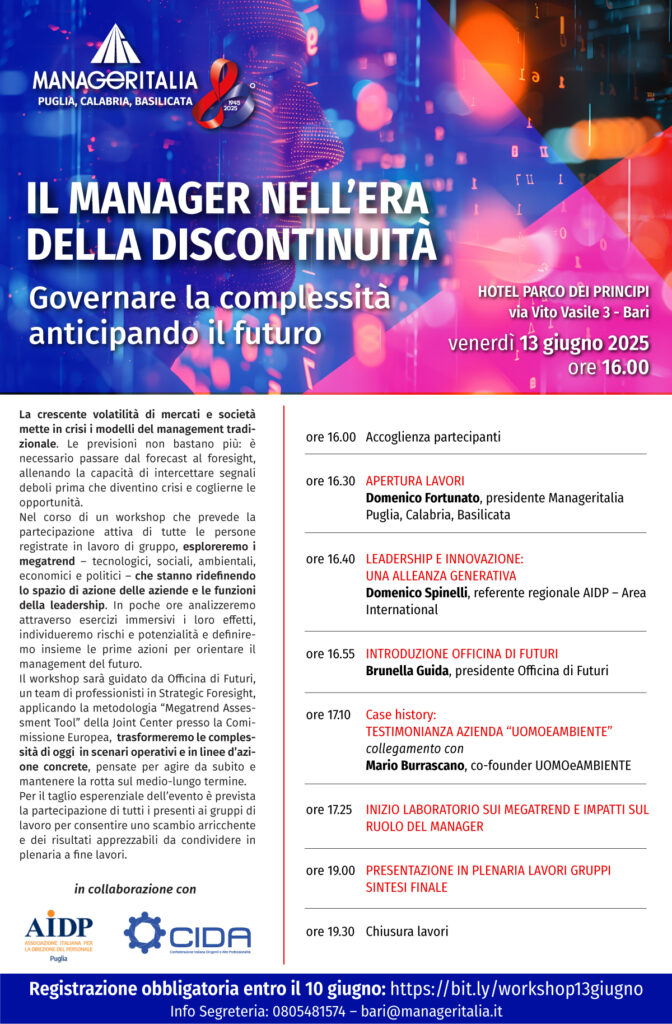 Domenico Fortunato, presidente Manageritalia Puglia, Calabria, Basilicata - ore 16.40 LEADERSHIP E INNOVAZIONE: