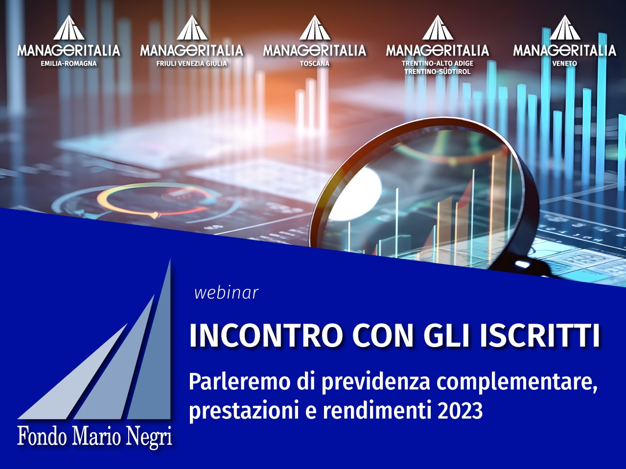 Incontro on line con gli esperti del Fondo Mario Negri per commentare le performance del 2023 e le prospettive attese per l’anno in corso. Potremo discutere di prestazioni e delle diverse opportunità riservate agli iscritti per la costruzione di un adeguato capitale previdenziale.