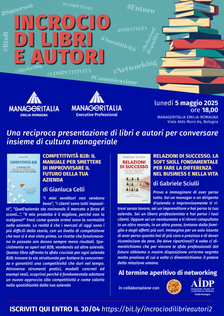 Una reciproca presentazione di libri e autori per conversare insieme di cultura manageriale con Gianluca Celli e Gabriele Sciulli.