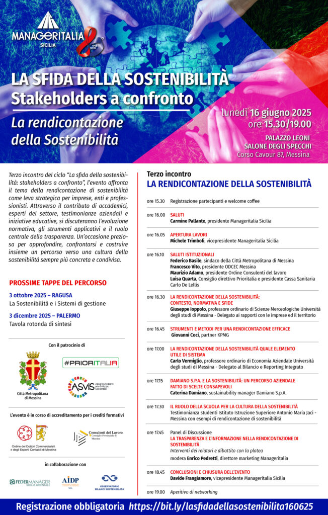 Terzo incontro del ciclo “La sfida della sostenibilità: stakeholders a confronto”, l’evento affronta il tema della rendicontazione di sostenibilità