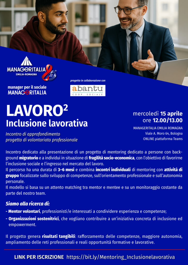 Incontro dedicato alla presentazione di un progetto di mentoring dedicato a persone con background migratorio e a individui in situazione di fragilità socio-economica, con l’obiettivo di favorirne l’inclusione sociale e l’ingresso nel mercato del lavoro.