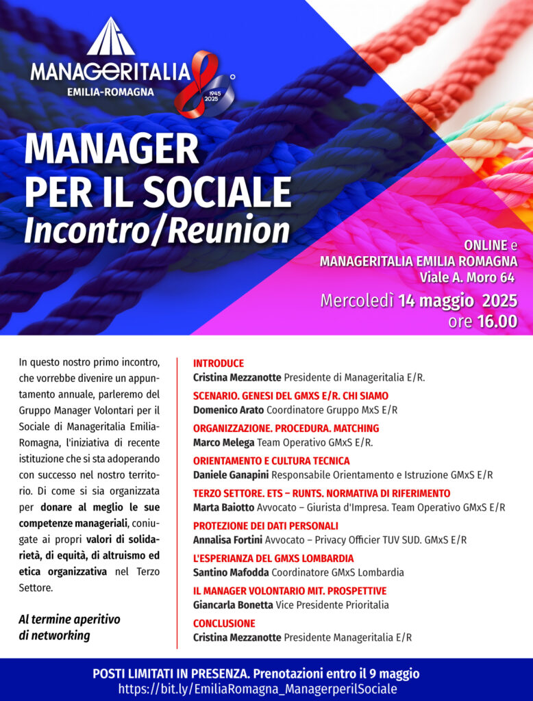 Sociale di Manageritalia Emilia- Romagna, l’iniziativa di recente istituzione che si sta adoperando con successo nel nostro territorio.