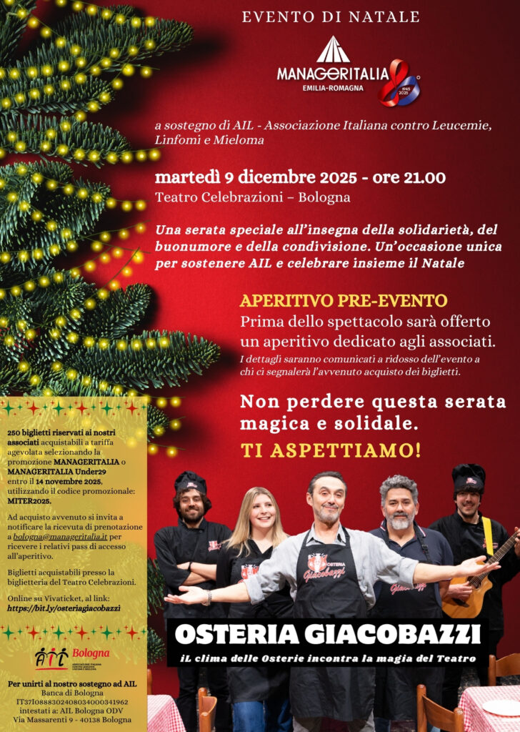 250 biglietti riservati agli associati Manageritalia Emilia Romagna acquistabili a tariffa agevolata selezionando la promozione MANAGERITALIA o MANAGERITALIA Under29 entro il 14 novembre 2025, utilizzando il codice promozionale: MITER2025.