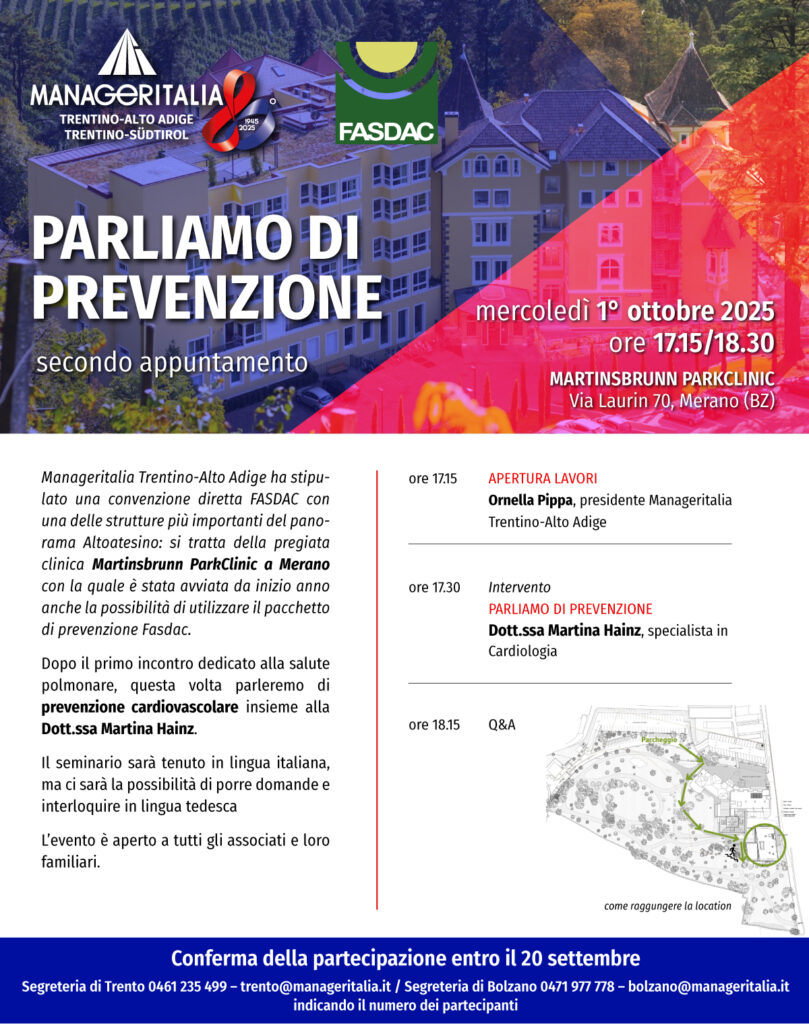 Segreteria di Trento tel. 046125499 trento@manageritalia.it – Segreteria di Bolzano tel. 0471977778 bolzano@manageritalia.it