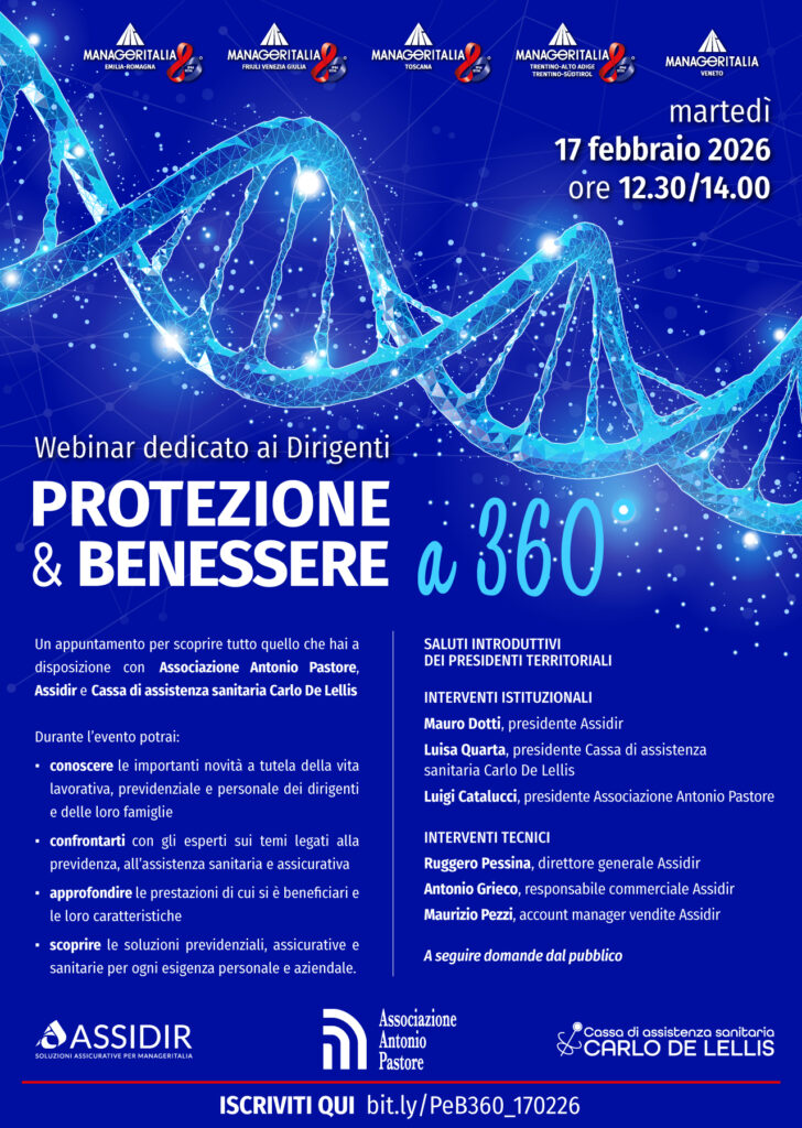 Un appuntamento per scoprire tutto quello che hai a disposizione come dirigente con Associazione Antonio Pastore, Assidir e Cassa di assistenza sanitaria Carlo De Lellis.