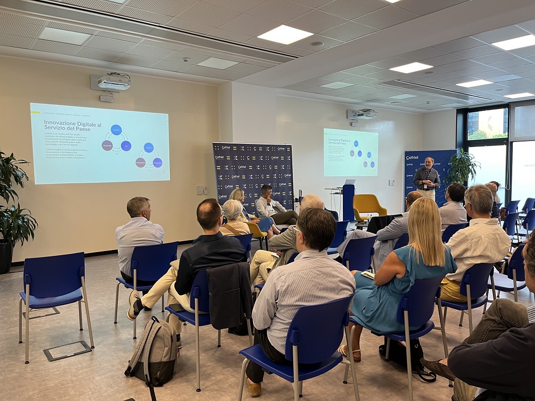 La visita al Cefriel ci ha dato l’opportunità di parlare non di tecnologia, ma di soluzioni direttamente applicabili nella gestione d’impresa. Come ci ha spiegato il direttore del centro, il professor Alfonso Fuggetta, il Cefriel lavora con più attori (imprese, università e pubblica amministrazione) svolgendo attività di sviluppo/innovazione, ricerca e formazione.