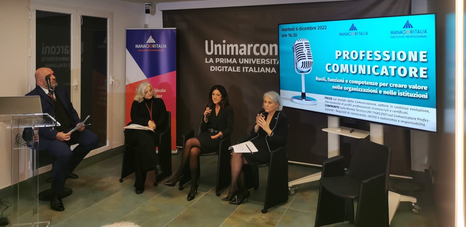 L’incontro, seguito in platea e online sui social Manageritalia da quasi un migliaio di persone, ha coinvolto in due tavole rotonde anche Massimiliano Parboni, partner Barabino & Partner; Carlo Gardini, Technical Documentation Manager in MG2; Virgilio D’Antonio, direttore del Dipartimento di Scienze Politiche e della Comunicazione – Università di Salerno – SdC Network; Daniela Vellutino, professoressa associata Dipartimento di Scienze Politiche e della Comunicazione – Università di Salerno. A dare il benvenuto, negli splendidi locali dell’Università Marconi, Tommaso Saso, direttore marketing e relazione esterne e docente di Marketing e comunicazione d’impresa – Università G. Marconi.