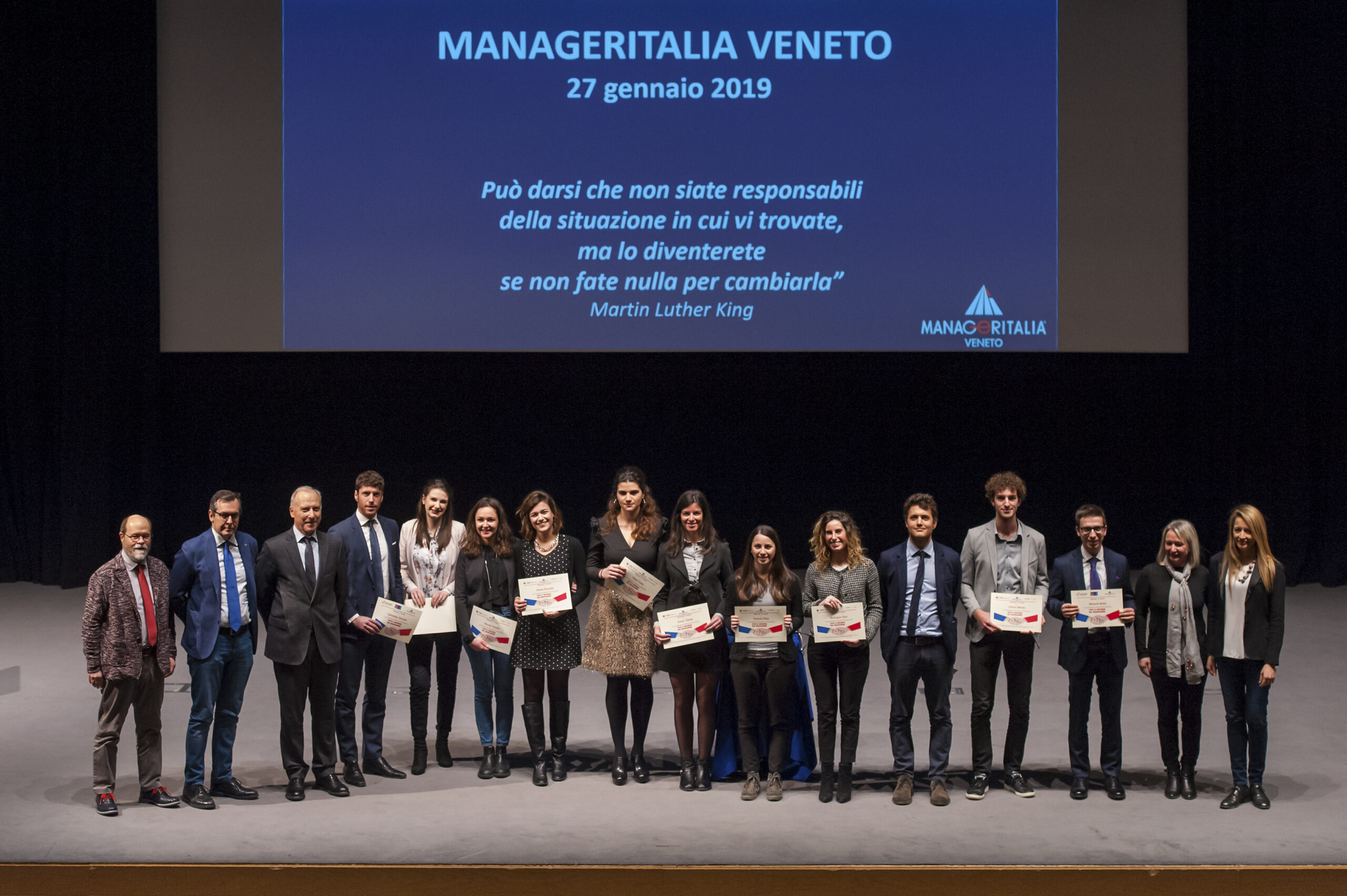 Una premiazione che è stata un evento nell’evento per gli stimoli del conduttore (il presidente di Manageritalia Veneto Lucio Fochesato) e la verve di tanti giovani che hanno risposto colpo su colpo e in modo sentito a domande sulle sensazioni stimolate dallo spettacolo e sul lavoro che vorranno fare tra 10 anni. Tutti appassionati agli studi scelti e non pochi già determinati circa la professione che vorranno fare. Tanti con progetti già in corso e storie che li vedono muoversi, in Italia e in alcuni casi all’estero, con obiettivi chiari e percorsi già in parte delineati. Tra i manager storie di successo e costruite con passione e risultati.