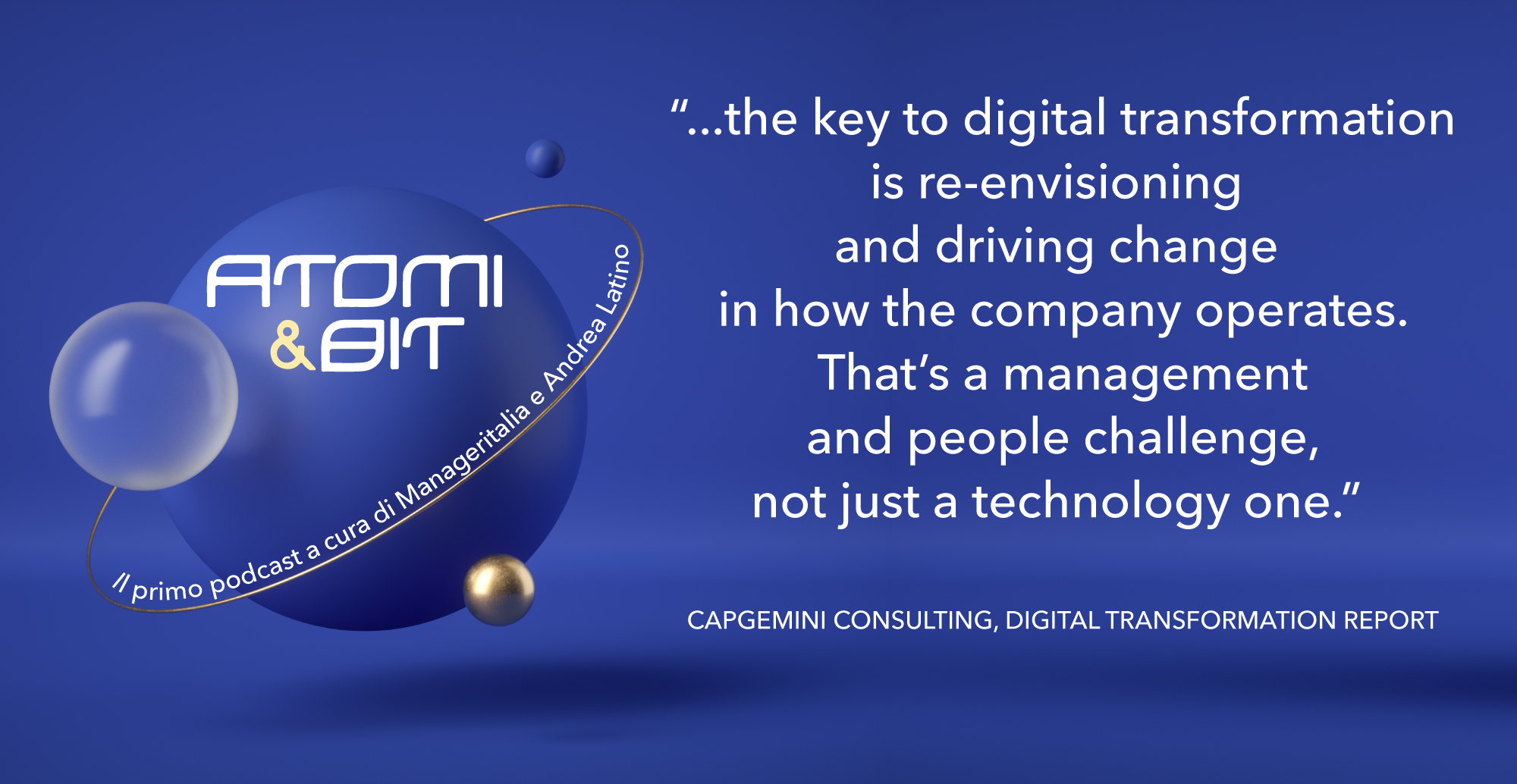 Dopo il grande successo di ascolti delle prime 10 puntate (oltre 3mila ascoltatori) e la pausa estiva riparte il podcast di Manageritalia e Andrea Latino Atomi & Bit.