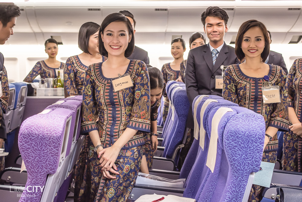 3) La promozione della compagnia e della città, anche attraverso il personale. Molte compagnie aeree di bandiera hanno sostituito la tradizionale dimostrazione delle misure di sicurezza durante il volo con video più o meno originali. Il video della SIA non sembra particolarmente fantasioso, ma mostra alcuni luoghi della città-stato non sempre conosciuti che incuriosiscono, una buona operazione di marketing. Il logo della compagnia è sempre evidente in ogni oggetto a bordo e deve essere sempre messo in primo piano, anche sul tovagliolo. Ma l’impressione è che il migliore biglietto da visita della compagnia sia il personale.