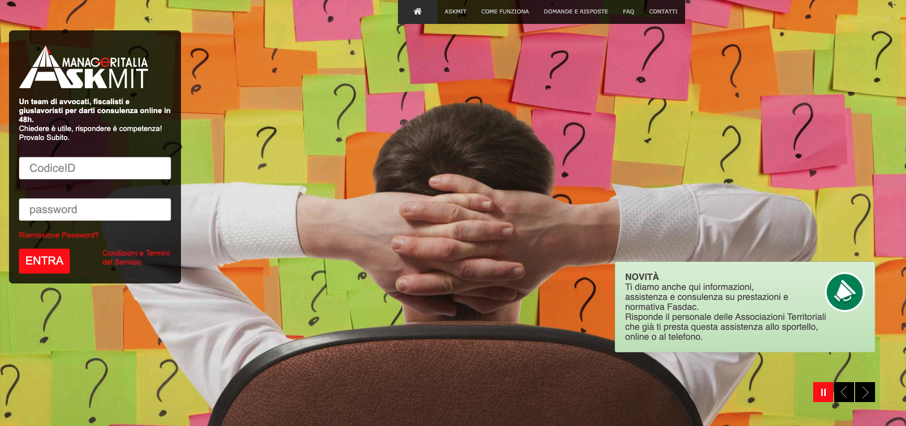 È questo il caso di AskMit il servizio di consulenza e informazioni online in 48 ore lanciato cinque anni fa, a fine 2015, da Manageritalia e da allora sempre più utilizzato e apprezzato dai manager associati.