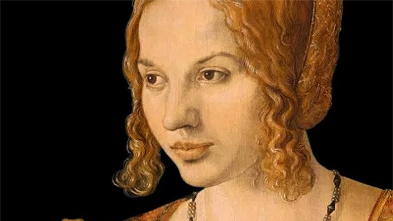 Indossa un unico gioiello, una collana di perline e pietre dure, forse vetro, di forma romboidale, in perfetto accordo con il motivo decorativo del corpetto. Quale sia il suo nome, o la sua storia, non è dato sapere, è semplicemente la “giovane veneziana”. Molto di più, invece, si sa del suo autore, il pittore e incisore Albrecht Dürer, considerato il massimo esponente del Rinascimento tedesco.