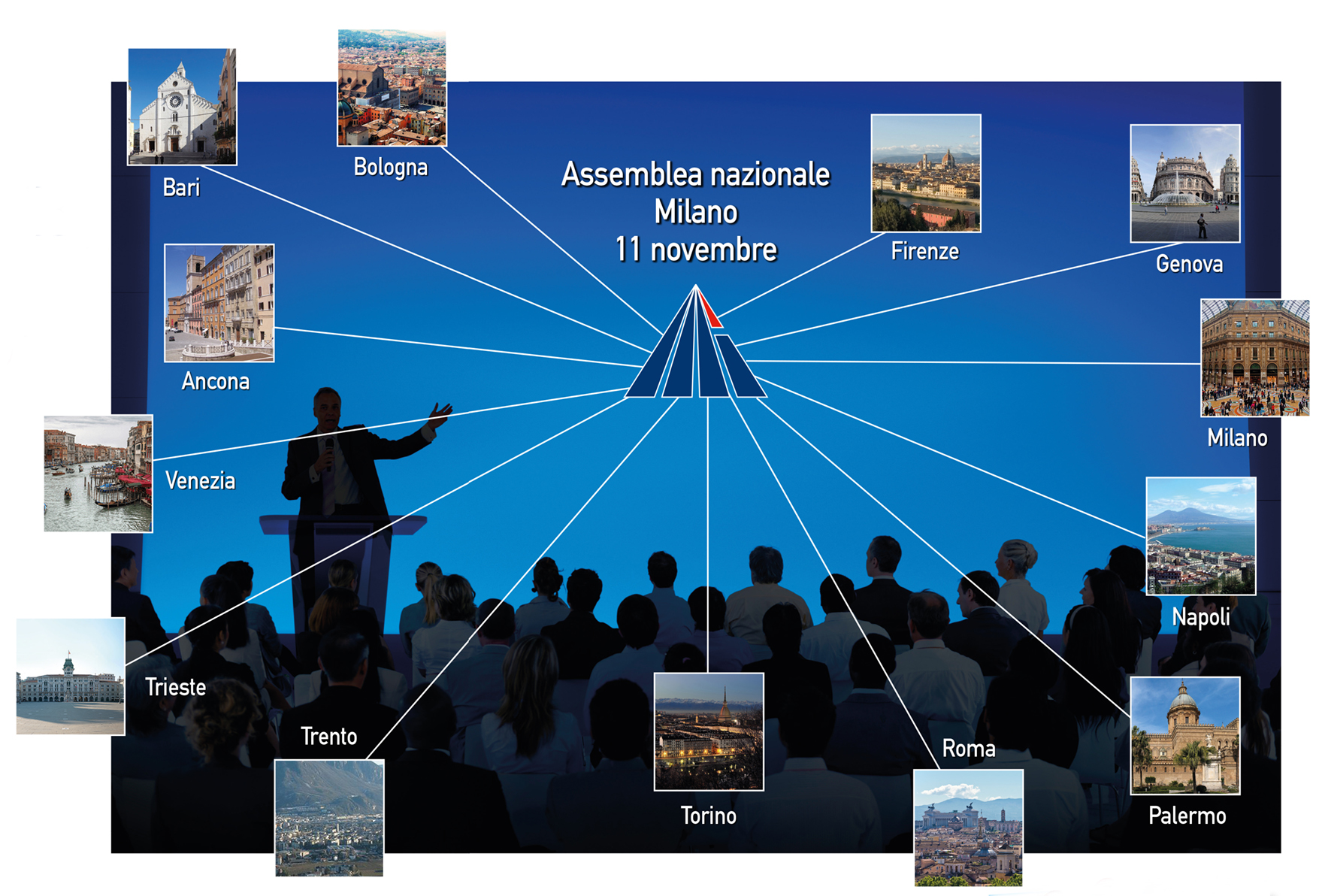 Sabato 11 novembre, dalle 9,30 alle 13,30, le assemblee delle associazioni territoriali si svolgeranno tutte in contemporanea collegate in videoconferenza con quella nazionale. L’assemblea nazionale continuerà poi nel pomeriggio con i delegati dalle 14:30 alle 16:30, sempre in videoconferenza, dall’hotel Meliá Milano (via Masaccio 19). Sarà una grande Assemblea nazionale che darà voce a 2.500 colleghi presenti nelle 13 sedi interessate.