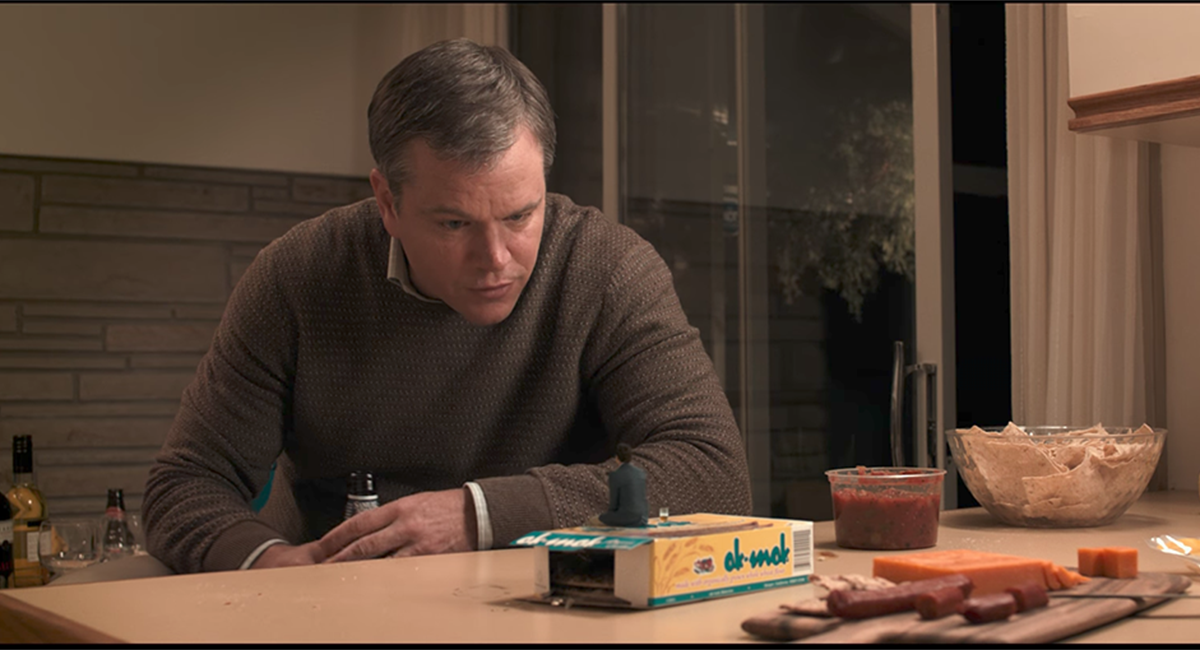 La pellicola, selezionata come film d’apertura della 74esima Mostra internazionale d’arte cinematografica di Venezia, racconta della crisi economica che ha colpito gli Stati Uniti. Tra le vittime della crisi ci sono anche Paul (Matt Demon) e Audrey Safranek (Kristen Wiig), preoccupati dal come riuscire a sbarcare il lunario e per le loro prospettive di lavoro.