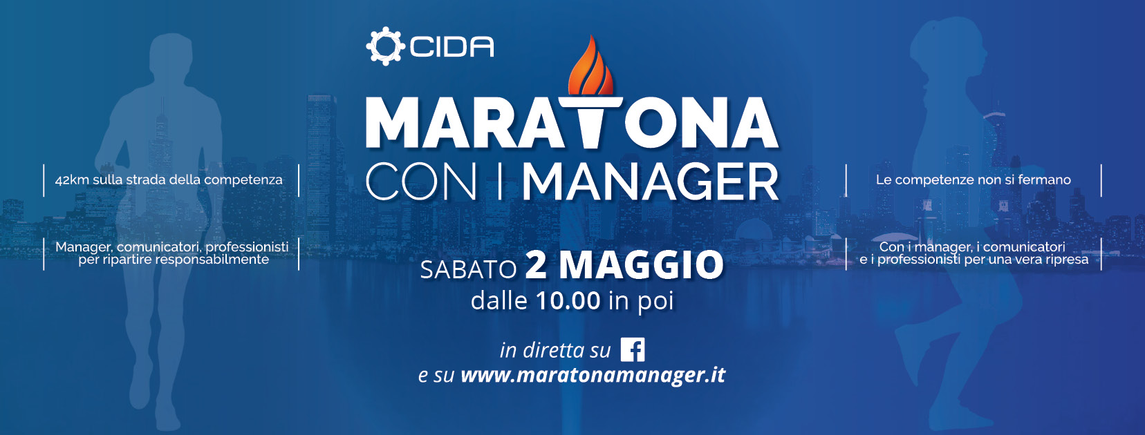 L’iniziativa, promossa da Cida e alla quale aderiscono altre associazioni professionali (Ascai, Com&Tec, Confassociazioni, Ferpi, IAA, Pubblicità. Progresso, Comunicazione Pubblica) si svolgerà sabato 2 maggio, dalle 10 in poi su www.maratonamanager.it