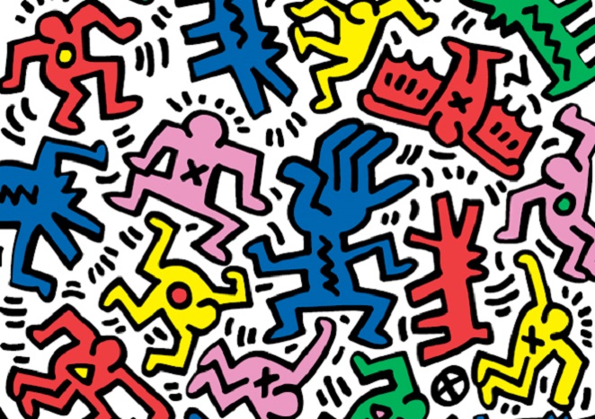 Alto, dinoccolato, un inconfondibile paio di occhiali e la faccia da bravo ragazzo: è così che si presenta sulla scena newyorkese degli anni ‘80 Keith Haring, pronto a cambiare il volto e il colore della città. Profondamente convinto che l’arte sia da condividere, un mezzo di comunicazione a disposizione di tutti, si pone come obiettivo proprio il portarla fuori dai musei, in mezzo alla gente comune, offrendola a chiunque abbia voglia di ascoltare argomenti talvolta scomodi. E con tali premesse, quale luogo più adatto della metropolitana? È sui pannelli di carta nera che ricoprono gli spazi pubblicitari non utilizzati che Haring compie i primi “raid” munito di gessetti bianchi. Dalla sua linea continua, veloce e armonica, nascono le sue icone pop come il bambino radiante, il cane, la piramide. Un esercito di personaggi che nel giro di pochissimo tempo conquista tutti, grandi e piccoli, addetti ai lavori e non. Haring vanta estimatori persino tra le forze dell’ordine che puntualmente lo arrestano per atti di vandalismo!